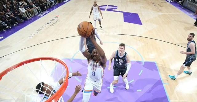 2025年12月08日 SGA伤缺雷霆30分大胜爵士15连胜!杰伦威25+8 霍姆格伦25+9