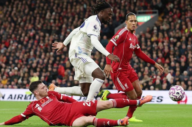 利物浦排出了4231阵型。埃基蒂克顶在最前面。萨拉赫、索博斯洛伊和加克波的进攻组合联袂出击。赫拉芬贝赫和麦卡利斯特组成双后腰。布拉德利、科纳特、范戴克和罗伯逊4后卫首发出战。马马尔达什维利担任首发门将。维尔茨、基耶萨和远藤航坐在替补席待命。